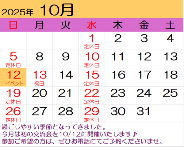 ※通常定休日の10/12(日)は、13時より交流会を開催いたします。