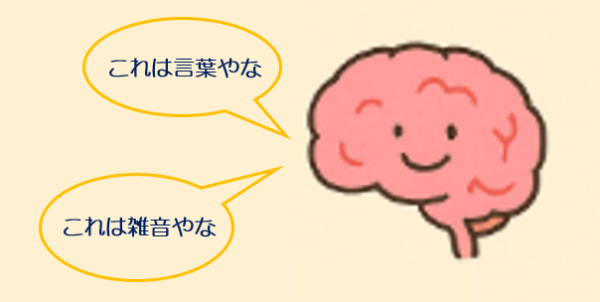 脳へと刺激が伝わり、ようやく「これは言葉」「これは雑音」と理解して、