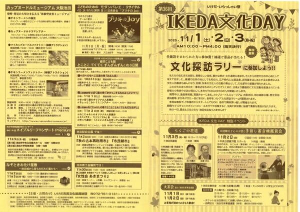 もうすぐ「IKEDA文化DAY」が開催されます。池田は古くから北摂文化の中心地として栄えてきました。