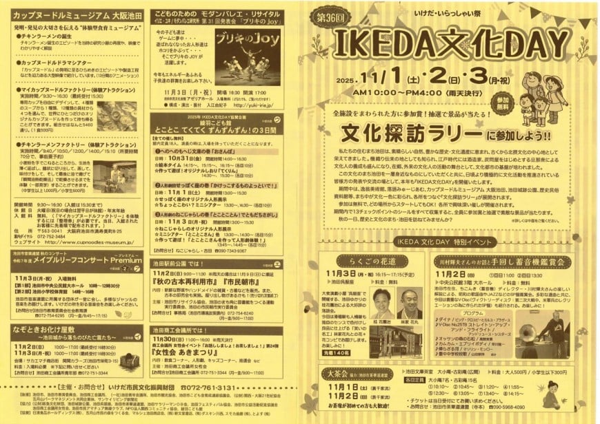 11月1日から3日はIKEDA文化DAYです。池田市が文化一色に彩られます。