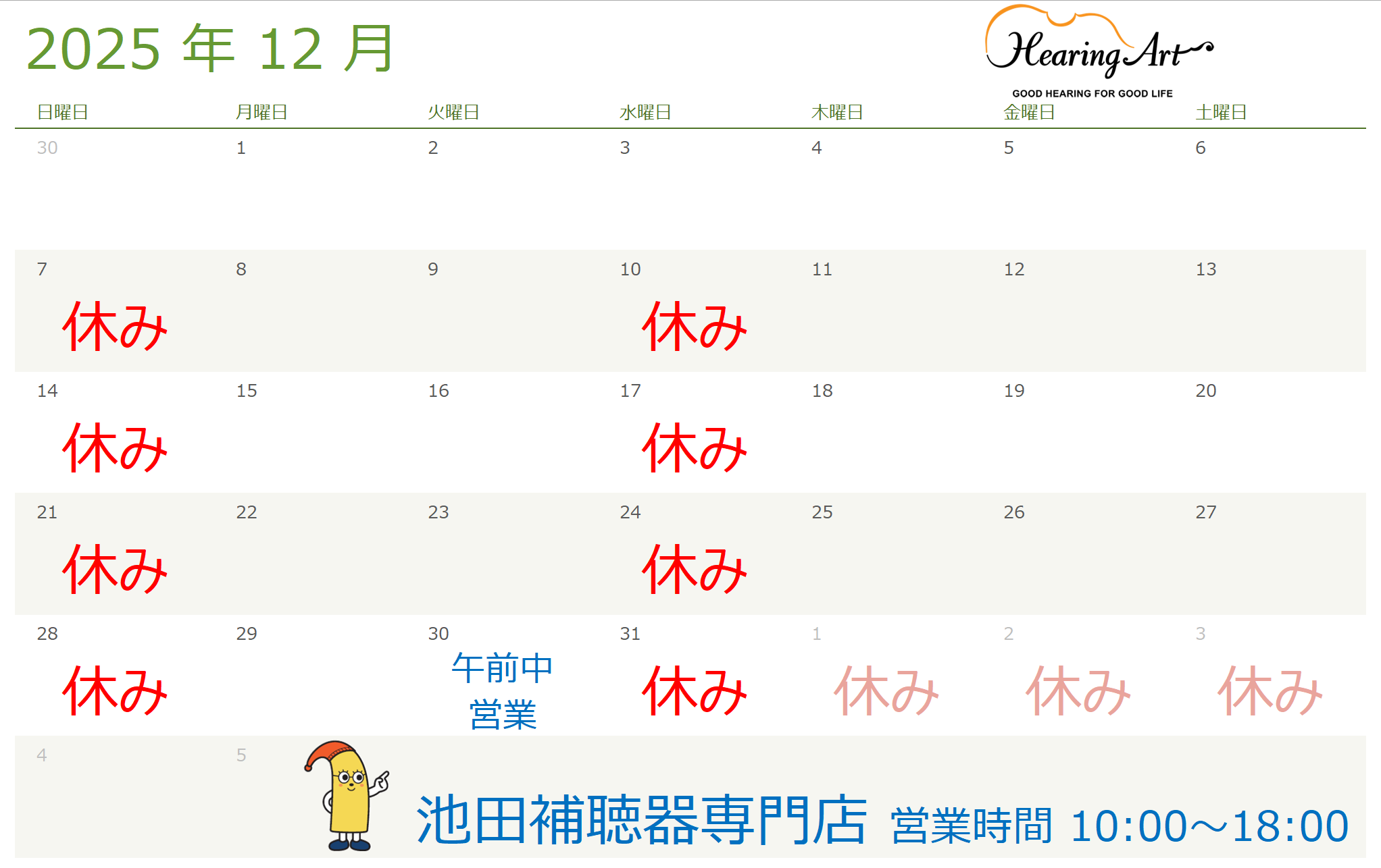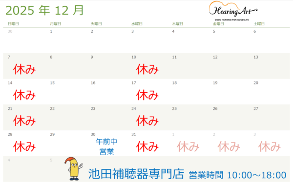 (池田店)12月営業時間のお知らせ