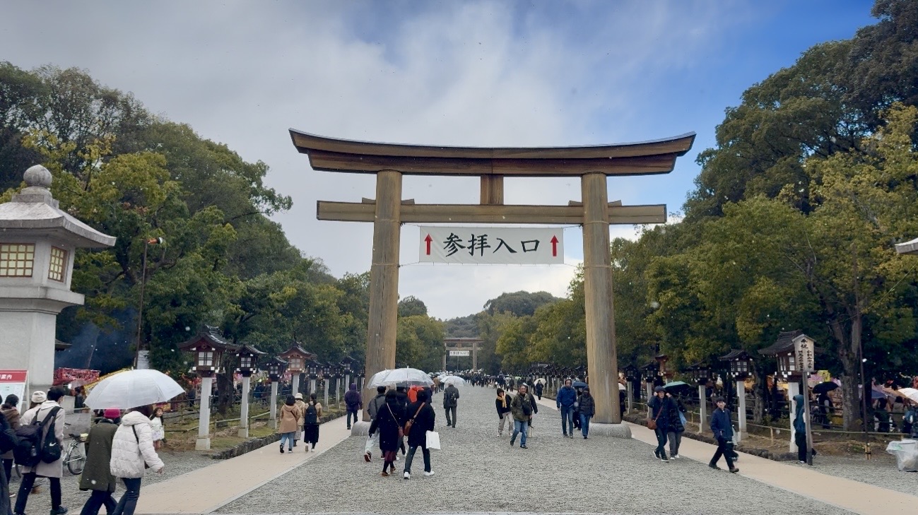 2026年初詣は奈良の橿原神宮です。雪が舞う冷たい日でした。