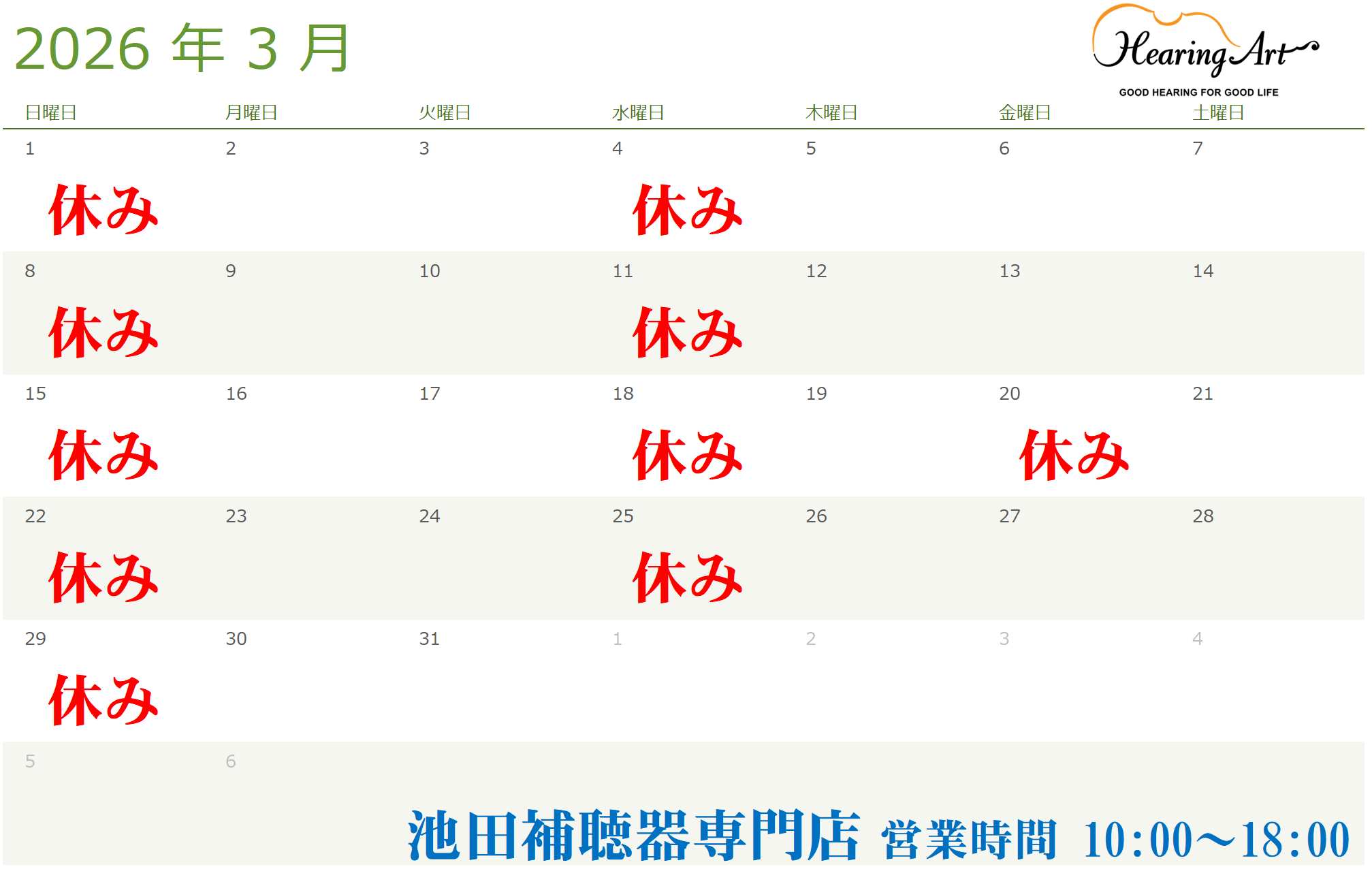 (池田店)3月の営業時間をお知らせ