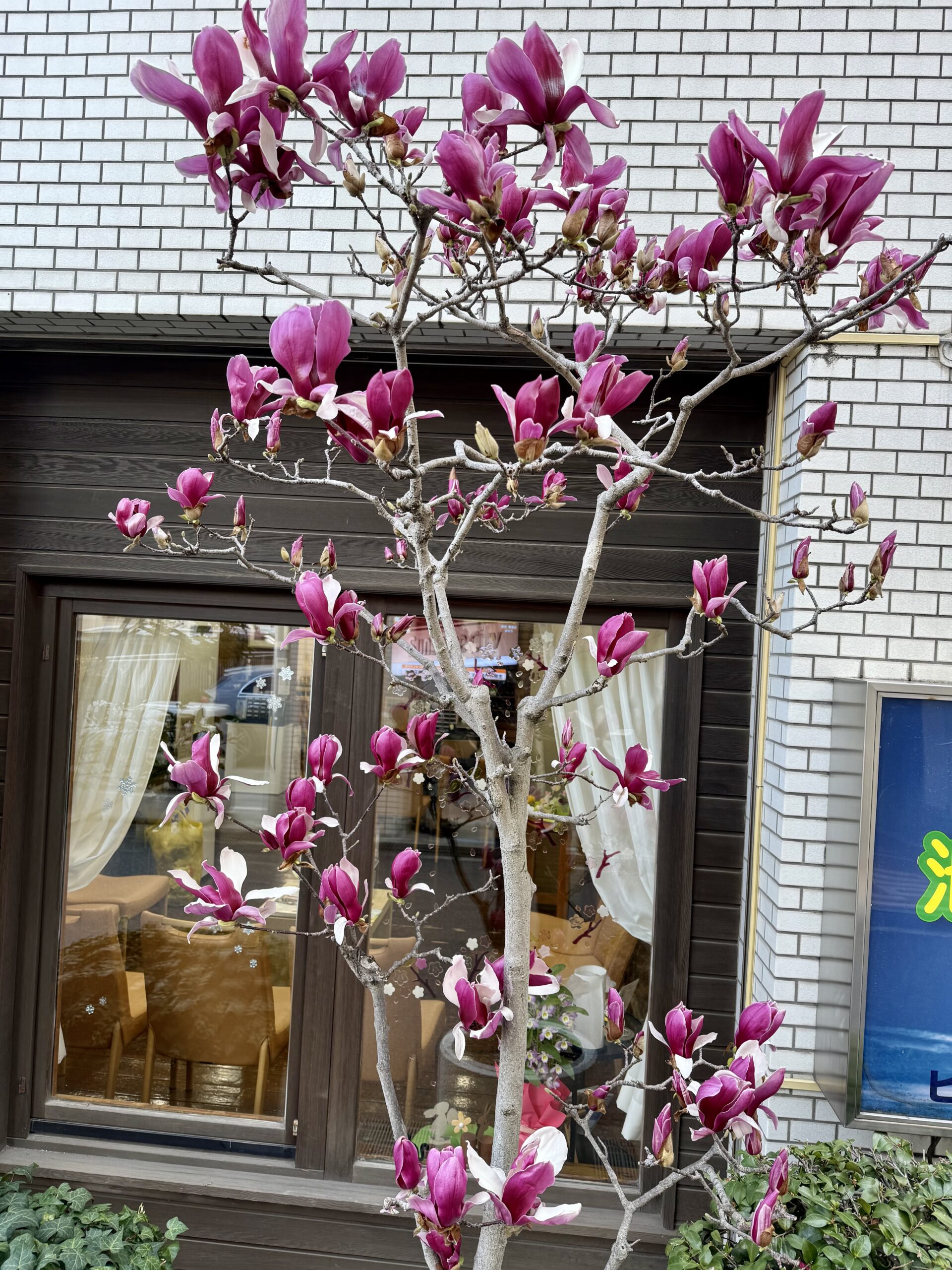 池田補聴器専門店の店先にある木蓮は満開です。