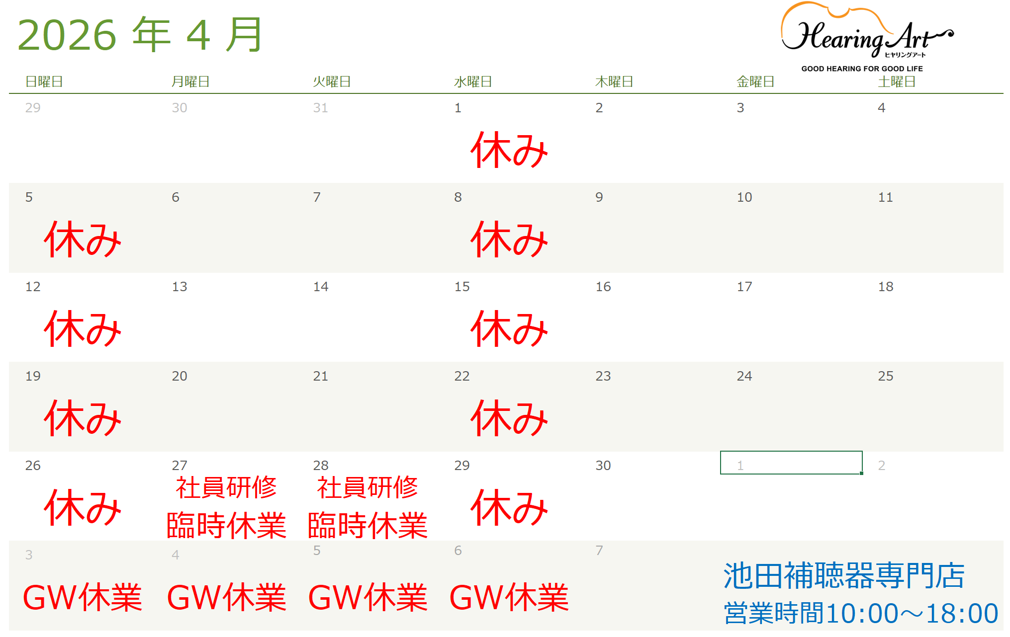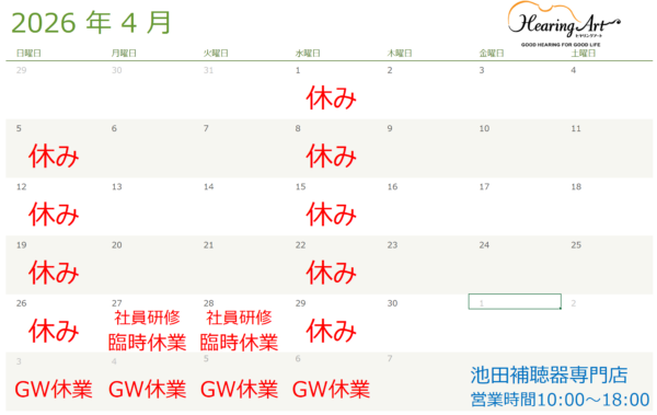 (池田店)4月とGWの営業時間をお知らせいたします。