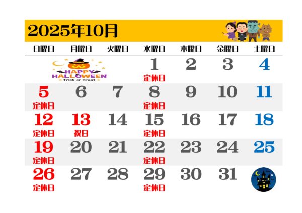 (高槻店)10月営業時間のお知らせ 仙波 2025年10月1日 【10月営業時間のお知らせ】 営業時間:10:00~18:00 定休日:水曜、日曜、祝日 下記の祝日がお休みとなります 10月13日(祝日)/スポーツの日 よろしくお願いいたします