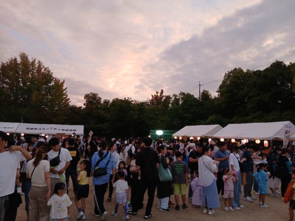 太鼓の音が響く中、子どもたちの笑い声と焼きそばやフランクフルトの香ばしい匂いが広がって…