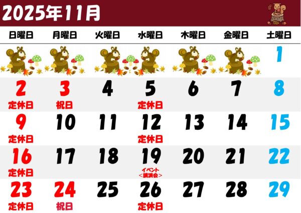 【11月営業時間のお知らせ】