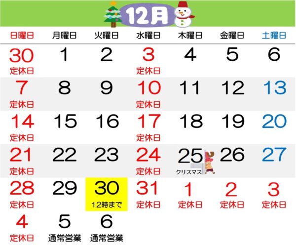 【12月営業時間のお知らせ】