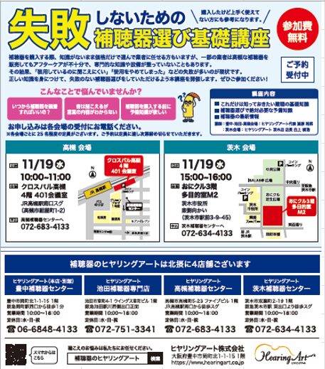 失敗しないための補聴器選び基礎講座 ~11月19日(水)茨木・おにクルで開催~